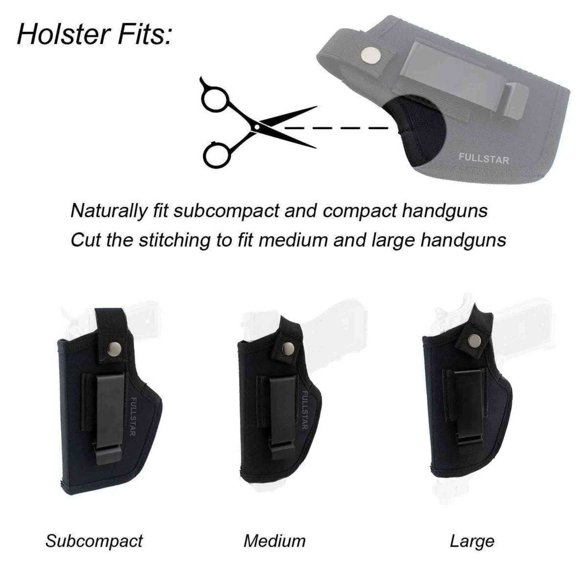 Versatile holster: This holster is designed to naturally fit both subcompact and compact providing a secure and comfortable carry option for various sizes.